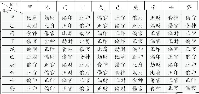 天干十神表